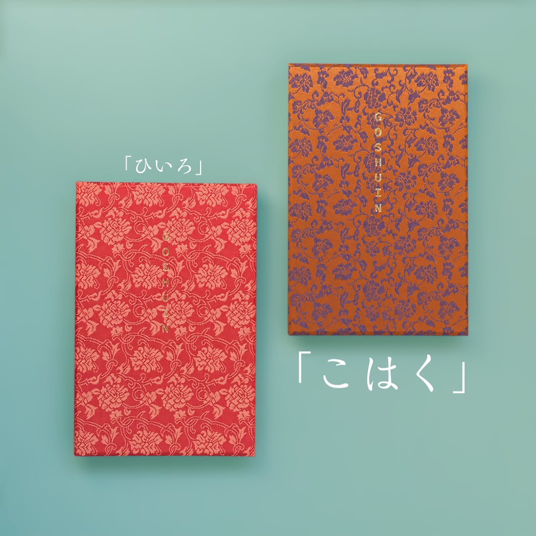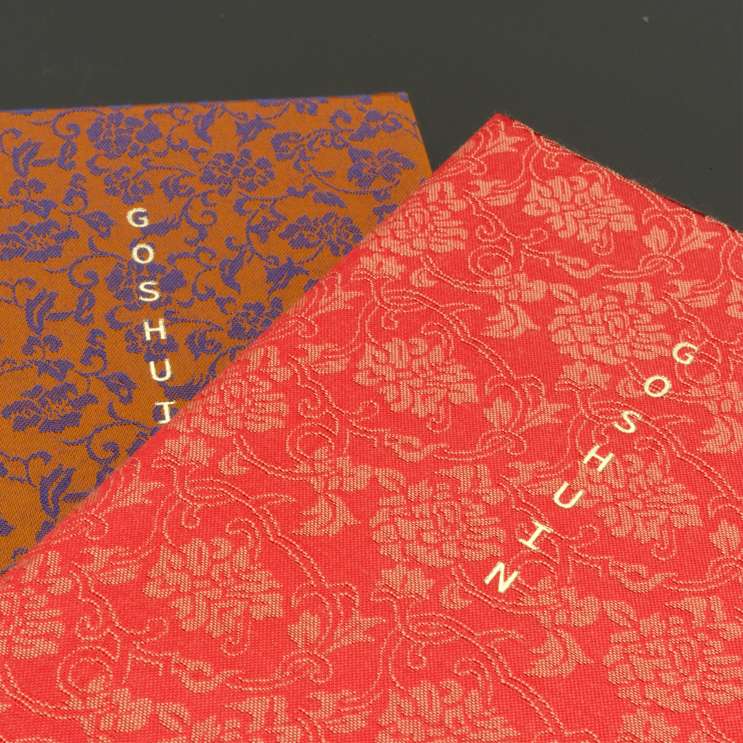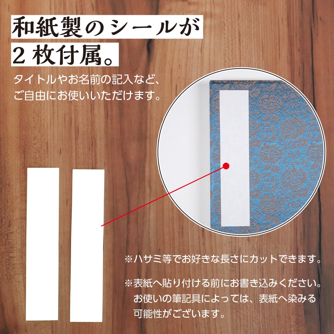 伝統的な「緞子(どんす)織」の生地を使用しています。地に光沢があり、高級感があるのが特徴です。シンプルながらもスタイリッシュな、金箔押しの刻印入り。